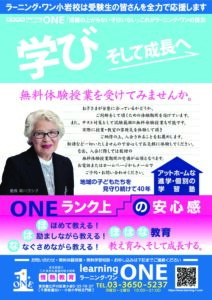 無料体験授業を受けてみませんか。ONEランク上の安心感ラーニング・ワン(learning ONE小岩校)